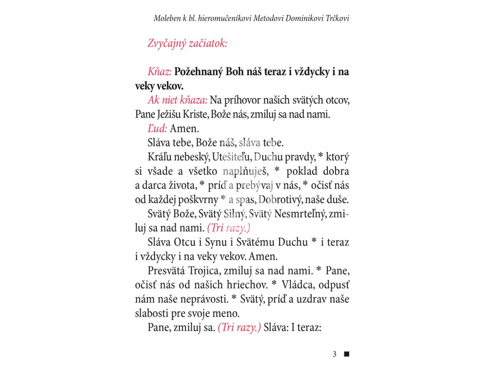 | Názov | Moleben k bl. hieromučeníkovi Metodovi Dominikovi Trčkovi |