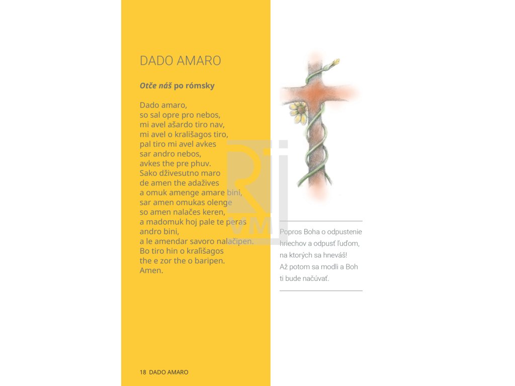 Kniha pre Rómov, ale nie len pre nich. Prvá časť knihy obsahuje krátke vysvetlenie, čo je modlitba, prečo a ako sa modlíme a rôzne druhy modlitieb. Druhá časť knihy sú piesne v rómskom a slovenskom jazyku s akordmi. Slovník – posledná časť knihy – približuje význam slov a slovných spojení, s ktorými sa stretávame v duchovnej literatúre, na bohoslužbách a pri rôznych duchovných stretnutiach. Súčasťou knihy je aj CD s pesničkami a modlitbami.