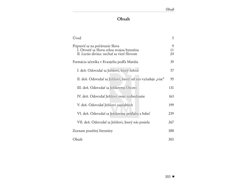 Premeditované Evanjelium podľa Matúša formou lectio divina. Sprevádza nás druhou etapou kresťanského rastu. Evanjelista Marek (prvá kniha Uveriť Ježišovi) nás priviedol k rozhodnutiu sa pre Ježiša Krista, k rozhodnutiu byť jeho učeníkom. Nie stále však naše slová a činy vyjadrujú túto našu základnú voľbu. Preto nás evanjelista Matúš učí rásť vo viere a pomáha nám stávať sa skutočnými kresťanmi. Duchovné cvičenia so sv. Matúšom nás vedú k plnšiemu odovzdaniu sa Ježišovi Kristovi a upevneniu sa v identite Kristových učeníkov.