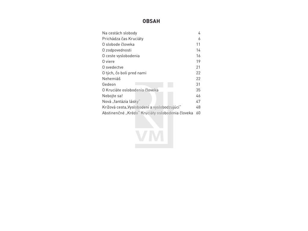 Potrebujeme dnes Kruciátu oslobodenia človeka?… Čo je tým neustále bijúcim srdcom Kruciáty oslobodenia človeka, čo zabezpečuje jej trvanie a rozvoj? Je to zážitok slobody. Paradoxne ten, kto prijíma výzvu Kruciáty ako obetu na úmysle vyslobodenia iných, sám radikálne vstupuje do priestoru slobody. Zakúša neobyčajne silno pocit, že je niekým. Jeho rozhodnutie, predtým ako začne premieňať okolie, formuje najprv jeho samého. Naoko drobná záležitosť abstinencie od alokoholu sa pre mnohých ľudí stáva podnetom, ktorý dáva do pohybu ich rozvoj smerom k osobnej plnosti, smerom ku slobode.